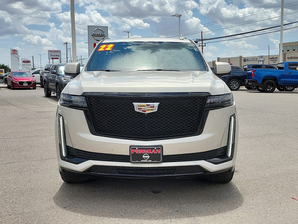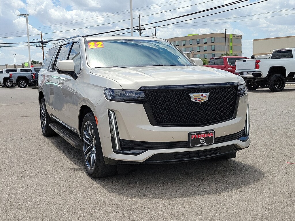 *Here at Permian GM every single Pre-Owned vehicle goes through a rigorous inspection by one of our Certified Technicians. Any recommended service is completed before vehicle is sold.*Odometer is 17755 miles below market average! Priced below KBB Fair Purchase Price!2022 Cadillac Escalade ESV Sport Platinum4WD 2-Speed Active Transfer Case Adaptive Cruise Control Air Ride Adaptive Suspension AKG Studio Reference 36-Speaker Audio System Automatic Seat Belt Tightening Automatic Stop/Start Body-Color Door Handles Door Lock & Latch Shields Electronic Limited-Slip Differential Enhanced Automatic Emergency Braking Enhanced Automatic Parking Assist Extra Capacity Cooling System Floor Console w/Covered Storage Front Auxiliary 12-volt Power Outlet Glass Breakage Sensor Heated & Ventilated Driver & Front Passenger Seats Heavy-Duty Trailering Package Hitch Guidance w/Hitch View Illuminating Front & Rear Sill Plates Integrated Trailer Brake Controller Platinum Interior Trim Power Lumbar Massage Driver Seat Power Lumbar Massage Front Passenger Seat Power Panoramic Tilt-Sliding Sunroof Preferred Equipment Group 1SH Rear Camera Mirror Rear Camera Mirror Washer Rear Cross Traffic Alert Rear Seat Entertainment System Reconfigurable Full-Color Head-Up Display Reverse Automatic Braking Running Board Assist Steps Smart Trailer Integration Indicator Soft Closing Front & Rear Doors Start/Stop System Disable Button Theft-Deterrent Alarm System Touring Package Trailer Side Blind Zone Alert Trailer Tire Pressure Monitoring System Trailering Assist Guidelines Vehicle Inclination Sensor Vehicle Interior Movement Sensor Wired Auxiliary Trailer Camera (LPO).