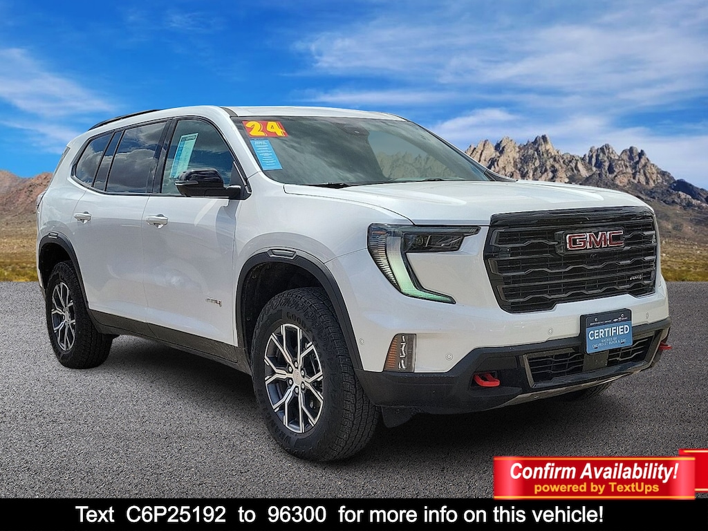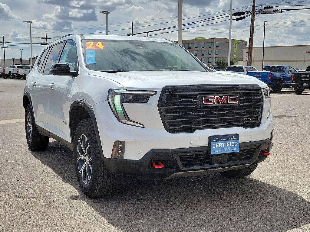 "*Here at Permian GM every single Pre-Owned vehicle goes through a rigorous inspection by one of our Certified Technicians. Any recommended service is completed before vehicle is sold.*2024 GMC Acadia AT4AWD Forest Storm W/Mahogany Accents Cloth 12 Speakers 8""Diagonal Head-Up Display Air Conditioning AM/FM radio: SiriusXM with 360L Automatic temperature control Driver Attention Assist Enhanced Automatic Parking Assist Heated & Ventilated Driver & Front Passenger Seats Heated Rear Outboard Seating Positions Heated Wiper Park Laminated Acoustic Glass Luxury Package Power steering Power windows Preferred Equipment Group 4SB Rear Camera Mirror SiriusXM w/360L Super Cruise Super Cruise Package."