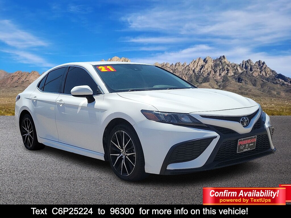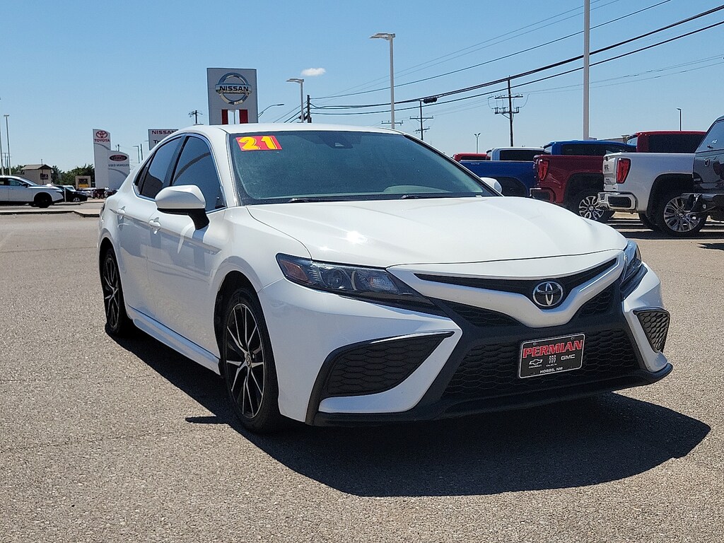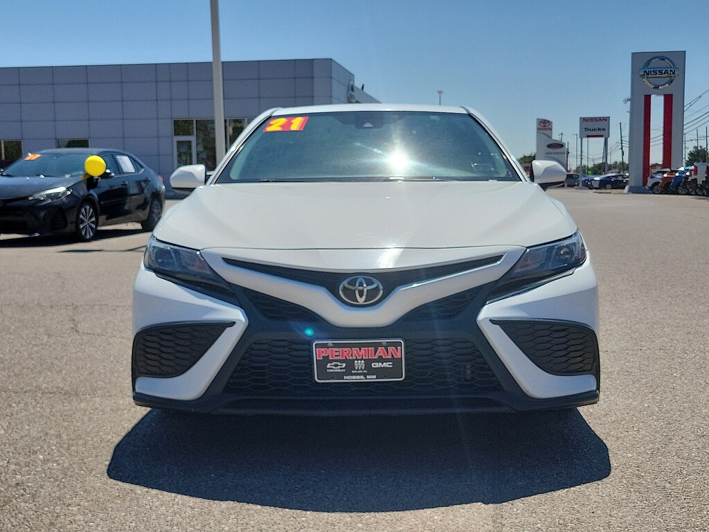 *Here at Permian GM every single Pre-Owned vehicle goes through a rigorous inspection by one of our Certified Technicians. Any recommended service is completed before vehicle is sold.*2021 Toyota Camry SEAsh Cloth 6 Speakers AM/FM radio: SiriusXM Apple CarPlay/Android Auto Bumpers: body-color Driver door bin Driver vanity mirror Power door mirrors Radio: AM/FM Audio System Security system Speed control Spoiler.